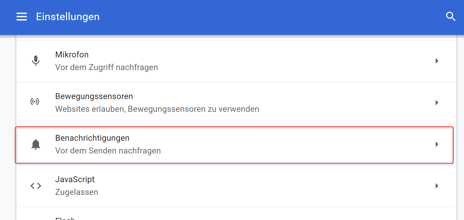 Die Einstellung hierzu finden Sie im Chrome unter Einstellungen > Weitere Einstellungen > Benachrichtigungen