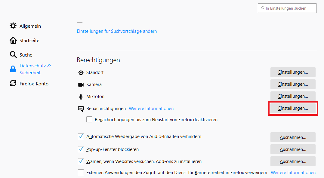 Die Einstellung hierzu finden Sie im Firefox unter Einstellungen > Datenschutz & Sicherheit