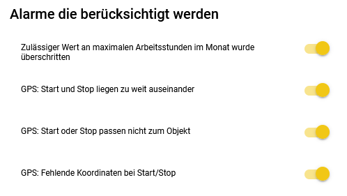 ab welcher Sie einen Alarm erhalten möchten, sollte sich der Mitarbeiter ausserhalb dieser Toleranz ein- bzw. ausstempeln.