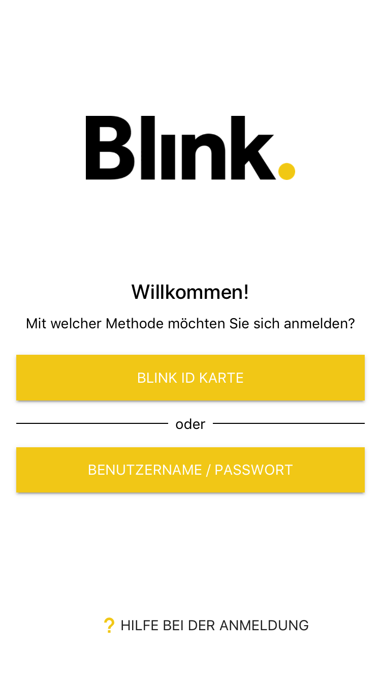 Damit Sie die App nutzen können, müssen Sie sich einmalig in der App registrieren. Für diesen Schritt brauchen Sie die Blink ID Karte!