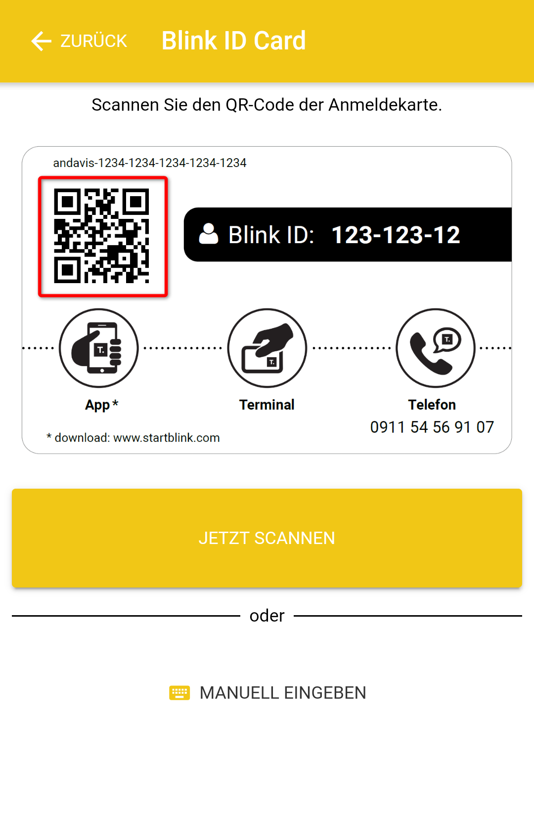 Teamleiter, die eine Blink ID Karten zugewiesen bekommen haben, verwenden bitte "Blink ID Karte". Systemadministratoren nutzen zur Anmeldung Ihren "Benutzernamen und ein Passwort".