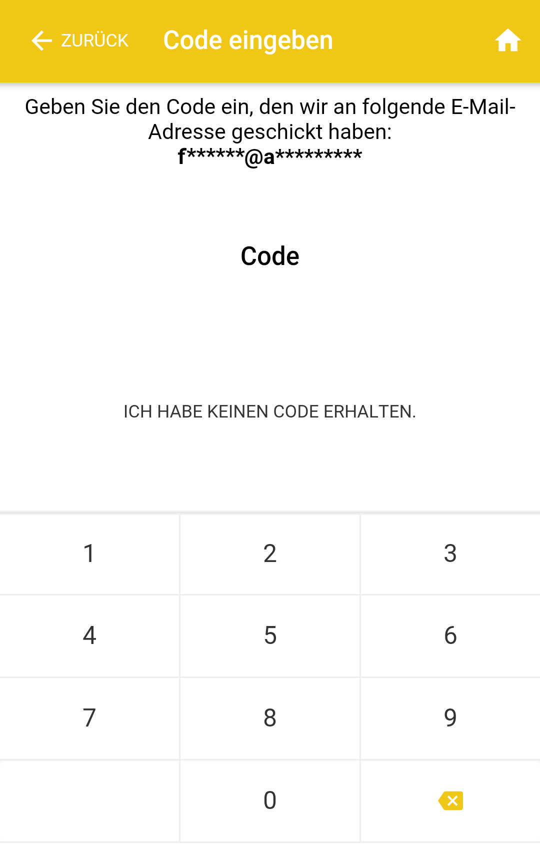 Tippen Sie jetzt den 6-stelligen Bestätigungscode aus der E-Mail oder der SMS ein.