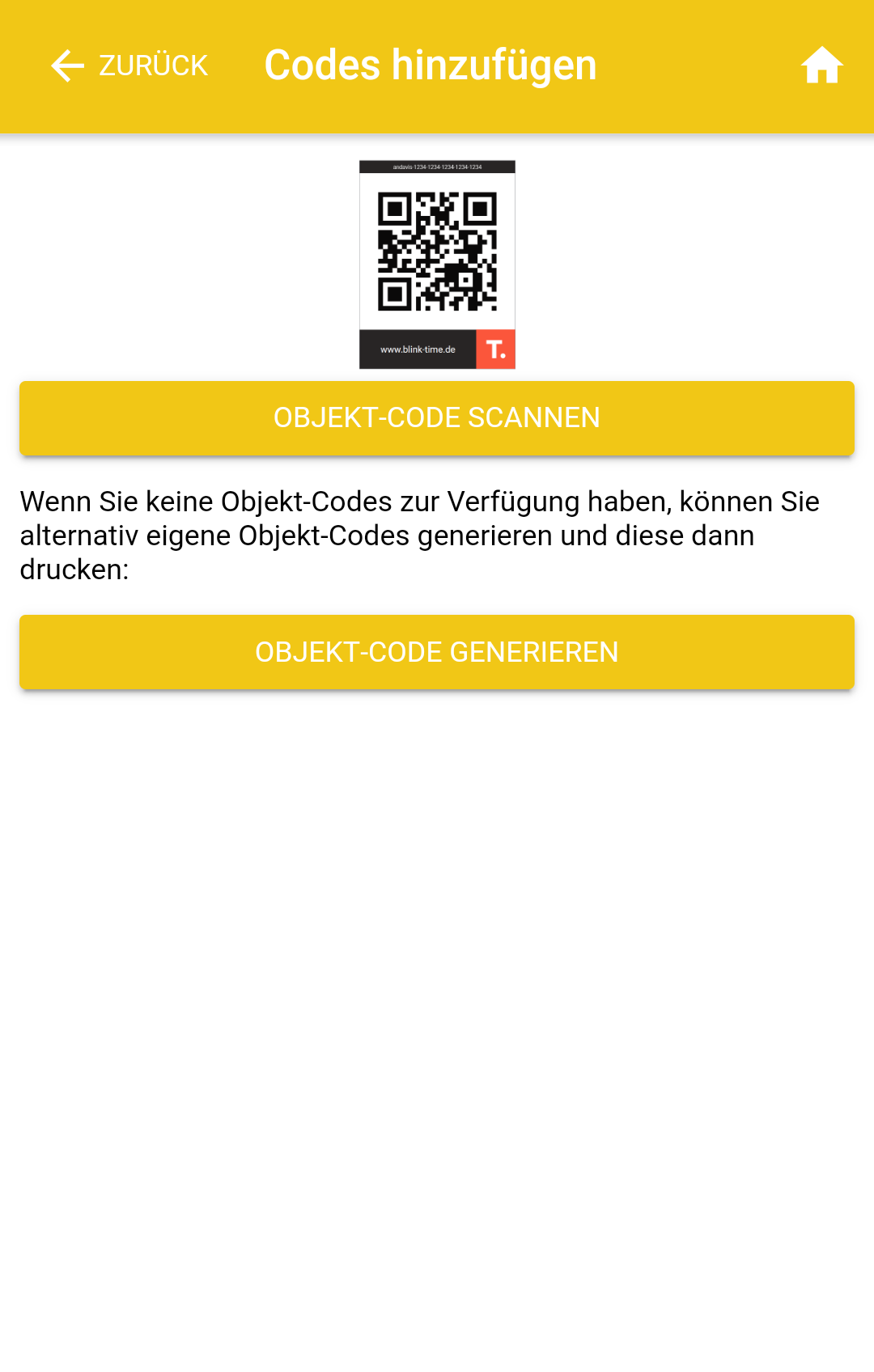 - Oder Sie können selbst einen Objekt-Code generieren und diesen im Anschluss ausdrucken. Klicken Sie hierzu auf "Objekt-Code generieren".