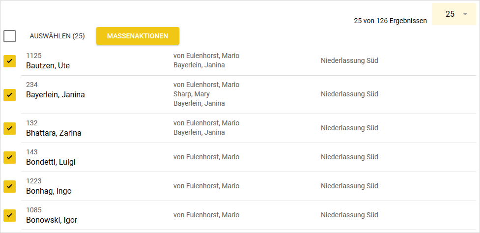 Die Liste der Mitarbeiter und Objekte wurde für die neuen Bereiche angepasst. Die Bereiche werden in einer separaten Spalte eingeblendet. Außerdem wurde die Liste kompakter gestaltet, so dass auf dem Smartphone mehr Einträge gleichzeitig sichtbar werden.