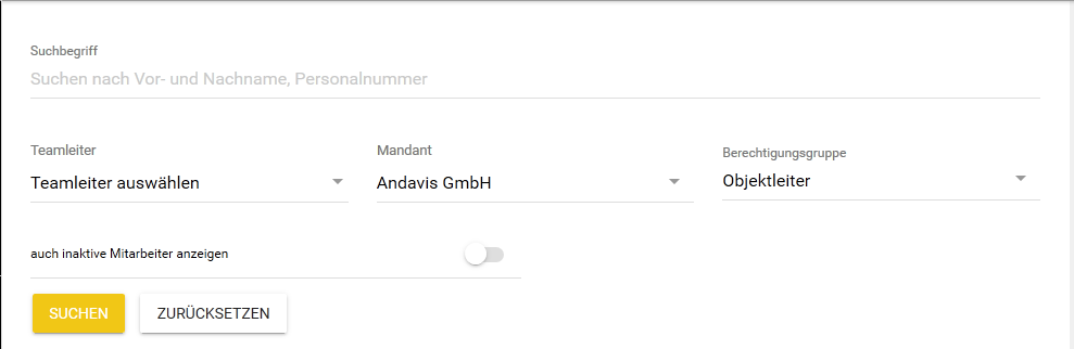 Zusätzliche Filterkriterien bei der Mitarbeitersuche und bei der Standortsuche.