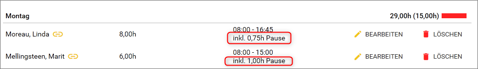 Zur besseren Übersicht in der Einplanung werden Pausenzeiten in den geplanten Sollzeiten mit angezeigt.
