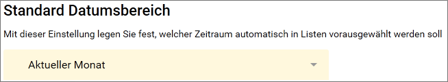 Jeder Benutzer kann jetzt über den Menüpunkt "Persönliche Einstellungen" festlegen, welches Datum in Listen automatisch vorausgewählt sein soll: Aktuelle Woche, letzte Woche, aktueller Monat oder letzter Monat.