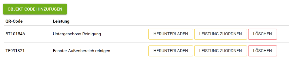 Sie können den QR Codes der Objekte bestimmte Leistungen zuordnen - damit wird je nach gescanntem QR Code automatisch die korrekte Leistungsart zugeordnet.