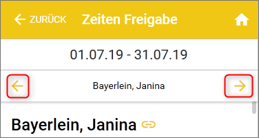 Im oberen Bereich der Zeiten Freigabe kann man jetzt mit Pfleil-Buttons von einem zum nächsten Mitarbeiter wechseln - auch ohne Zeiten freigegeben zu haben.