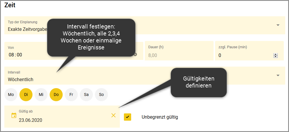 Außerdem können Sie einer Planung eine Gültigkeit geben, von wann bis wann die Planung gilt.