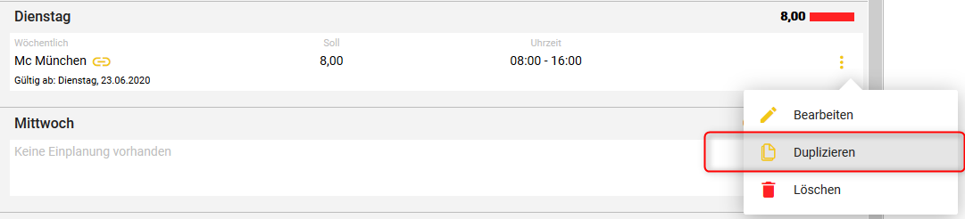 Wenn es ähnliche Planungen gibt, dann können Sie diese einfach mit einem Klick duplizieren.