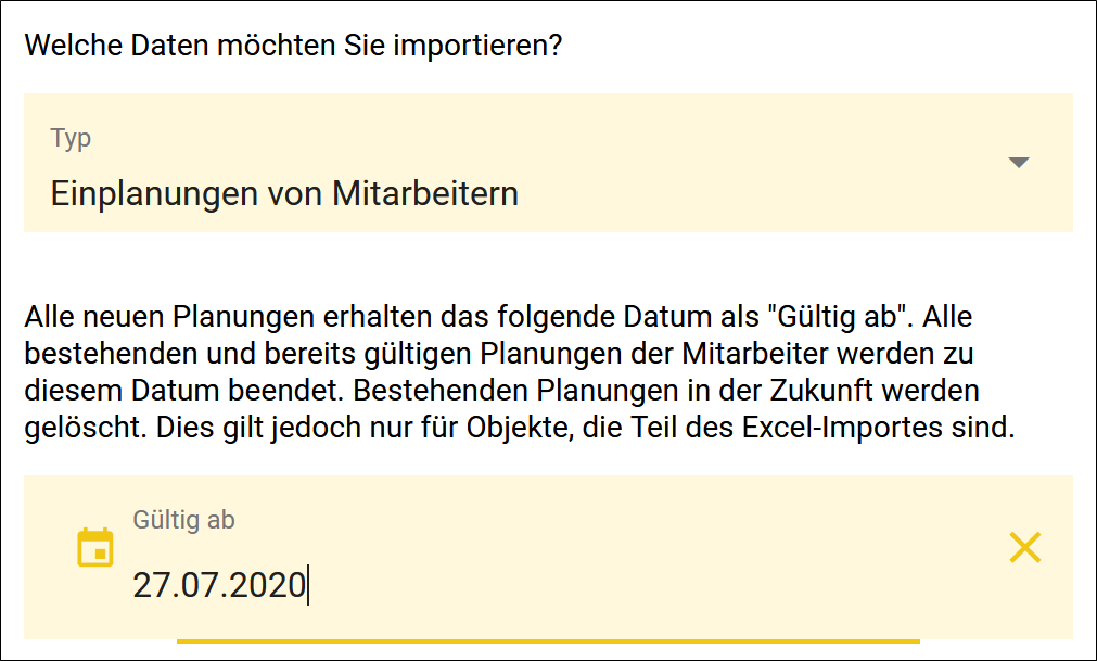 Der Excelimport wurde erweitert, so dass beim Import ein Gültigkeitsdatum angegeben werden kann. Damit können Planungen automatisch beendet und durch neue Planungen ersetzt werden.