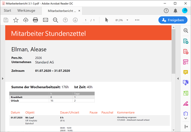 Mit den neuen Platzhaltern können Sie sich eine Liste aller Abwesenheiten mit Summen ausgeben lassen. Die Standardvorlage in unserer Dokumentation wurde aktualisiert und enthält jetzt auch diese neuen Platzhalter.