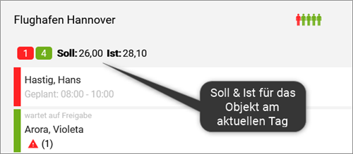 Direkt unter dem Objektnamen kann man im Monitor jetzt auch den aktuellen Soll / Ist Vergleich für den aktuellen Tag sehen.
