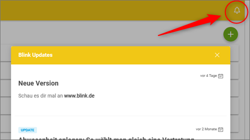 Wir haben eine News-Funktion in Blink integriert: Damit können wir alle Blink Anwender auf dem Laufenden halten, wenn z.B. wichtige Updates anstehen oder Verbesserungen vorgenommen wurden. Nicht alle Blink User bekommen unseren Newsletter (oder lesen ihn), daher haben wir hier eine zusätzliche Möglichkeit eingebaut unsere Blink User zu informieren.