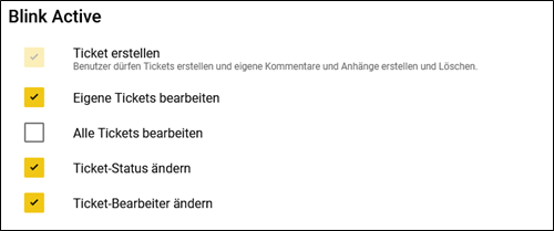 Die Berechtigungen werden nur angezeigt, wenn Blink Active im System aktiviert wurde.