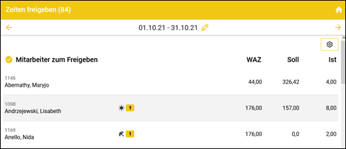 Die Personalnummer ist für die Bearbeitung der Arbeitszeiten sehr wichtig, vor allem wenn Mitarbeiter gleiche oder ähnliche Namen haben! Aus diesem Grund zeigen wir die Personalnummer auf vielen weiteren Seiten zusätzlich mit an z.B. Zeiten Freigabe, Zeiten Detailseite oder Urlaubsplanung.