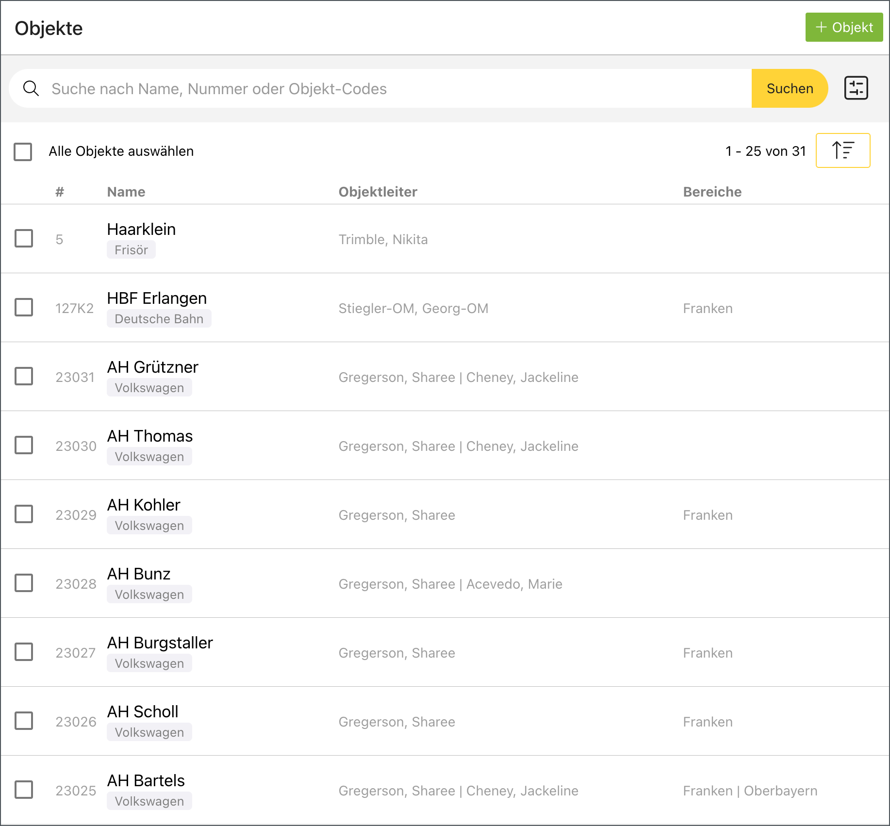 In der letzten Version haben wir die Mitarbeitersuche aktualisiert, jetzt folgt die Objektsuche! Auch hier gibt es jetzt die neuen Sortiermöglichkeiten: Automatisch wird das zuletzt angelegte Objekt oben angezeigt.