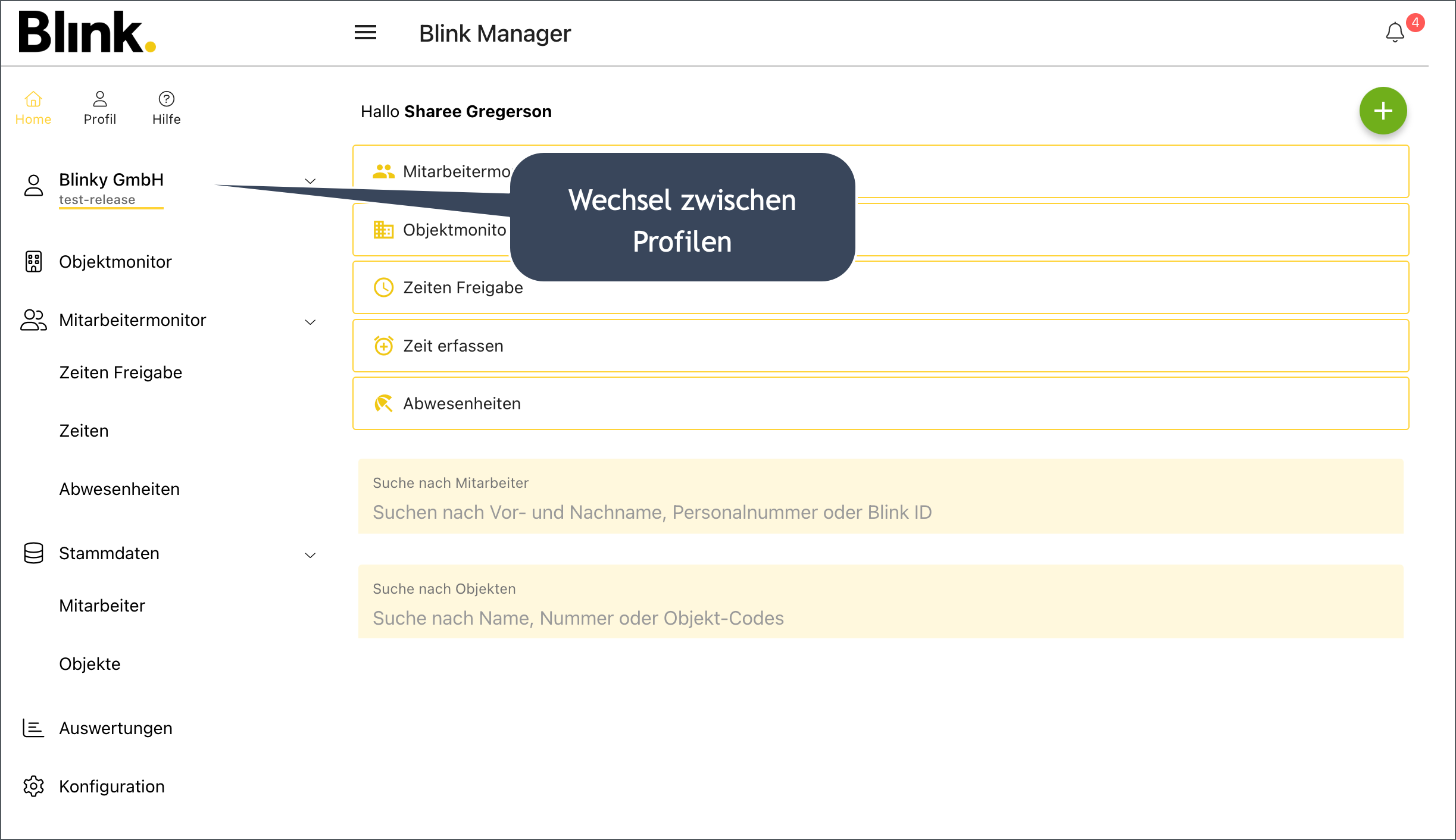 Objektleitungen, die Zugriff auf verschiedene Mandanten in Blink benötigen, mussten bisher mit verschiedenen Benutzern hantieren. Das hat jetzt ein Ende! Genau wie in der Blink Time App, kann man jetzt im Profil beliebige weitere Benutzer hinterlegen und dann über das Dropdown im Menü ganz einfach zwischen den Mandanten (Benutzern) wechseln!