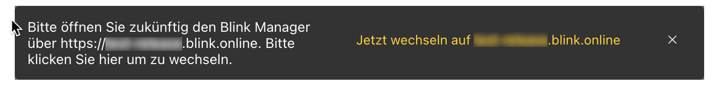 Ab sofort können alle Blink Manager über die Domain xxx.blink.online aufgerufen werden. Die bisherige URL im Format xxx.blink-time.de bleibt noch erhalten, wird aber langfristig nicht mehr erreichbar sein.