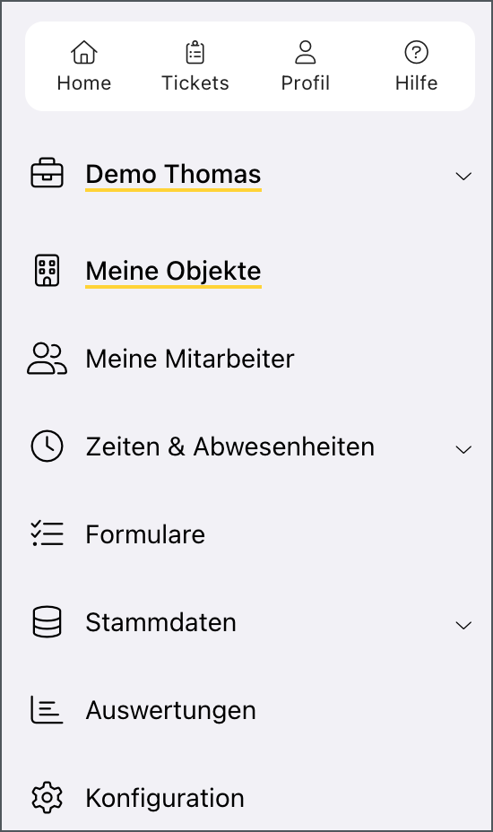 Zeiten, Abwesenheiten und Zeiten Freigabe wurde unter dem neuen Menüpunkt “Zeiten & Abwesenheiten” zusammengefasst