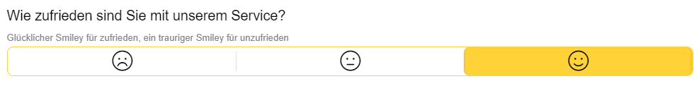 Der Benutzer kann eine Bewertung anhand der Auswahl aus 3 Smileys wählen (traurig, neutral, fröhlich).