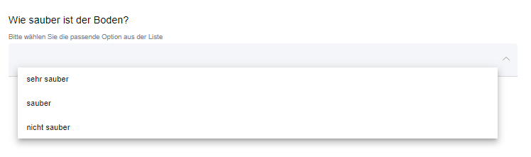 Wenn du eine Auswahl aus Optionen abfragen möchtest, bei denen die Optionen nicht Ja/Nein sind, wähle das Eingabe-Elemente “Auswahl aus Liste”.