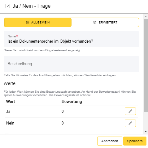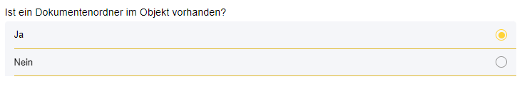 Der Benutzer wählt “ja” oder “nein”. Der Wert kann nicht geändert werden.