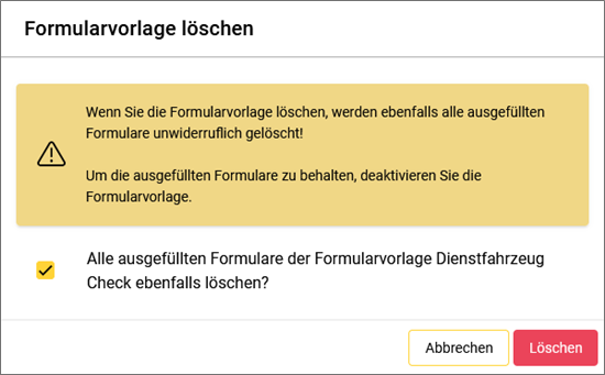 Formularvorlagen mit ausgefüllten Formularen löschen