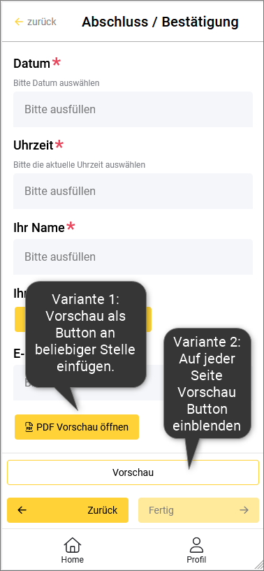 PDF-Vorschaufunktion beim Ausfüllen von Formularen