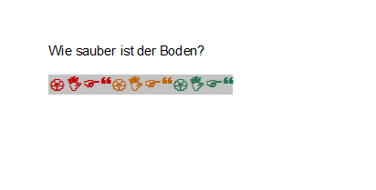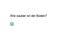 Sauberkeit des Bodens: «WieSauberIstDerBodenValue» | «WieSauberIstDerBodenItemPoints» von «WieSauberIstDerBodenMaxItemPoints»
