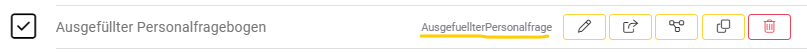 Mit dem Anlegen eines Elements wird automatisch auch eine Externe Nummer erzeugt, die in der Regel dem vollen Feldnamen entspricht. Du siehst den Namen in der Übersicht: