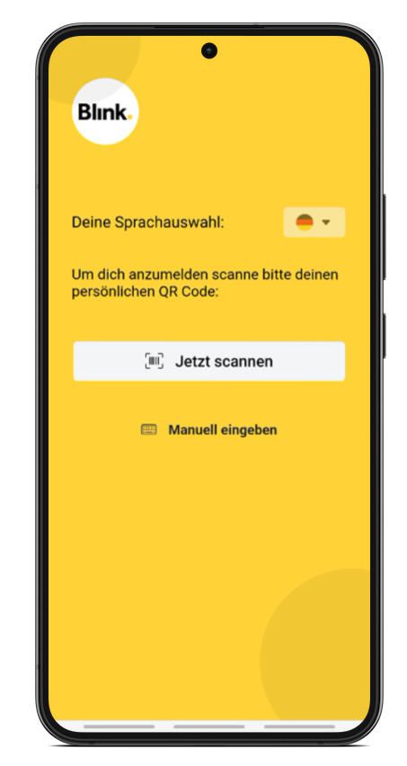 Lade zunächst die Blink me App aus dem Playstore/Appstore auf dein Smartphone und starte die App. Du kannst bereits hier die für dich passende aus den 21 angebotenen Sprachen auswählen. Du hast aber auch später noch die Möglichkeit, in deinem Profil die Sprache zu ändern.