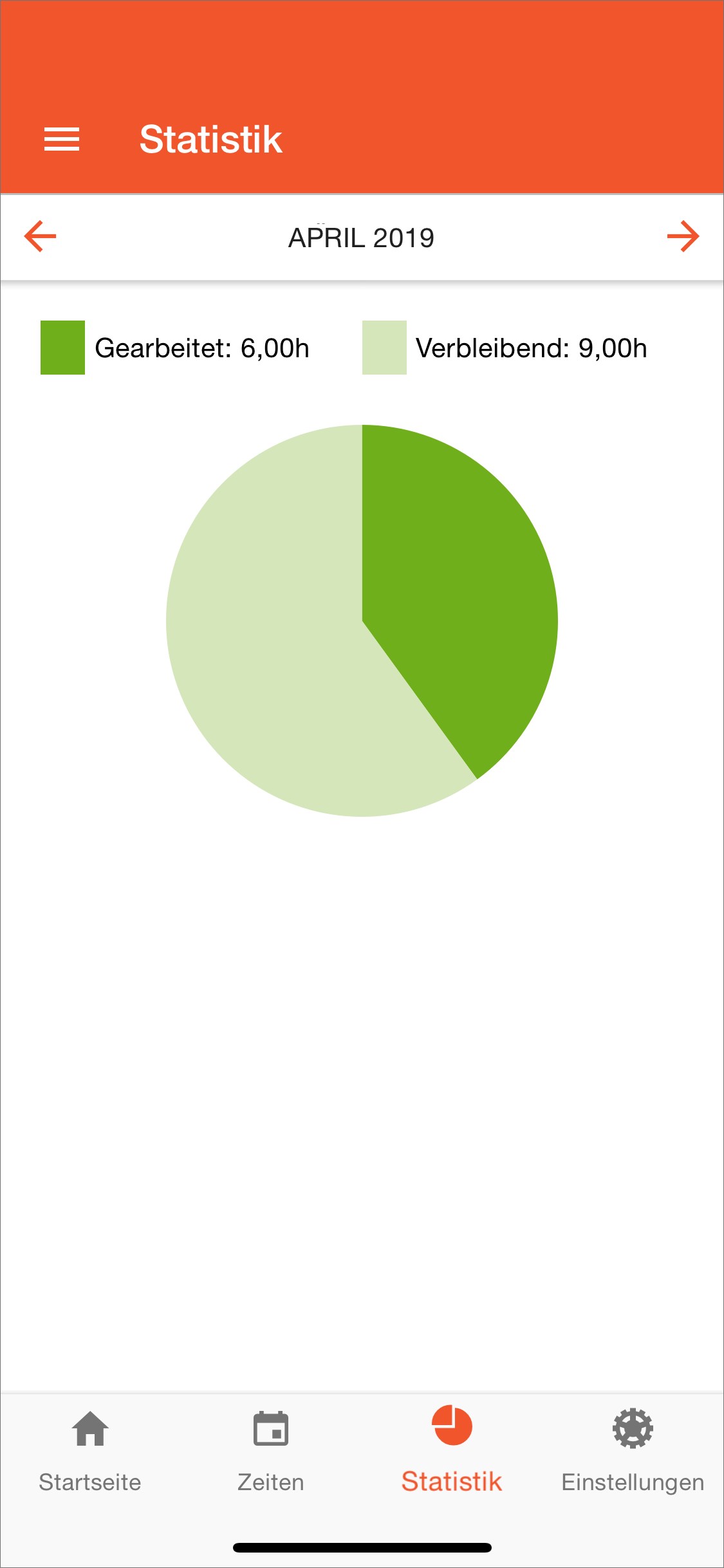 Hier können Mitarbeiter schnell erkennen, wieviele Stunden im aktuellen oder vorherigen Monaten an Zeiten erbracht wurden.