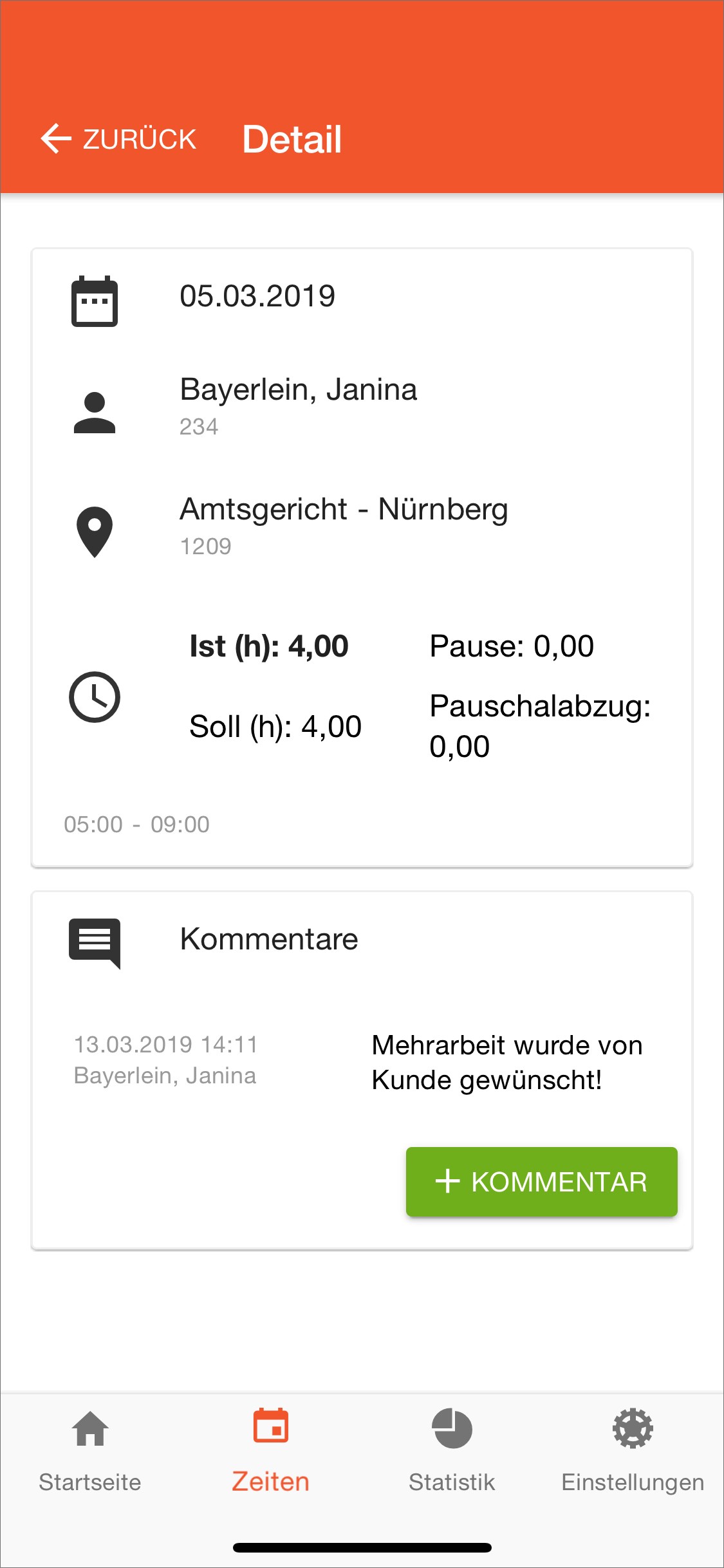 Mitarbeiter können Kommentare zu erfassten Zeiten hinterlegen.