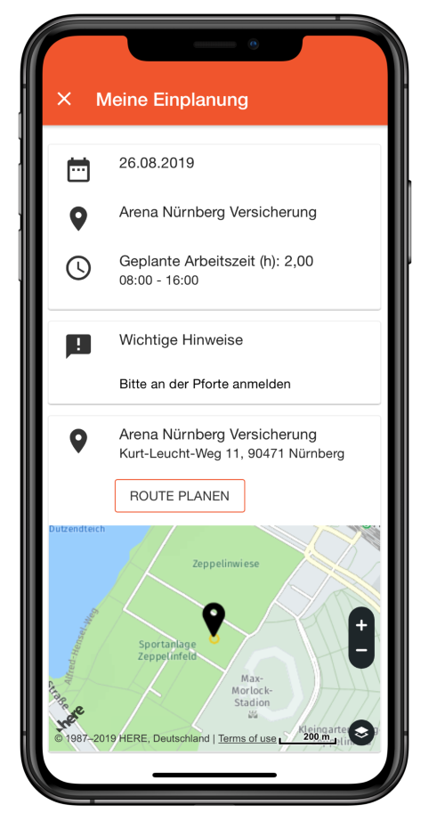 Die geplanten Objekte können jetzt mit vielen Zusatzinformationen angezeigt werden. Dazu gehört auch die Möglichkeit, dass man sich eine Route zum nächsten Objekt berechnen lassen kann.
