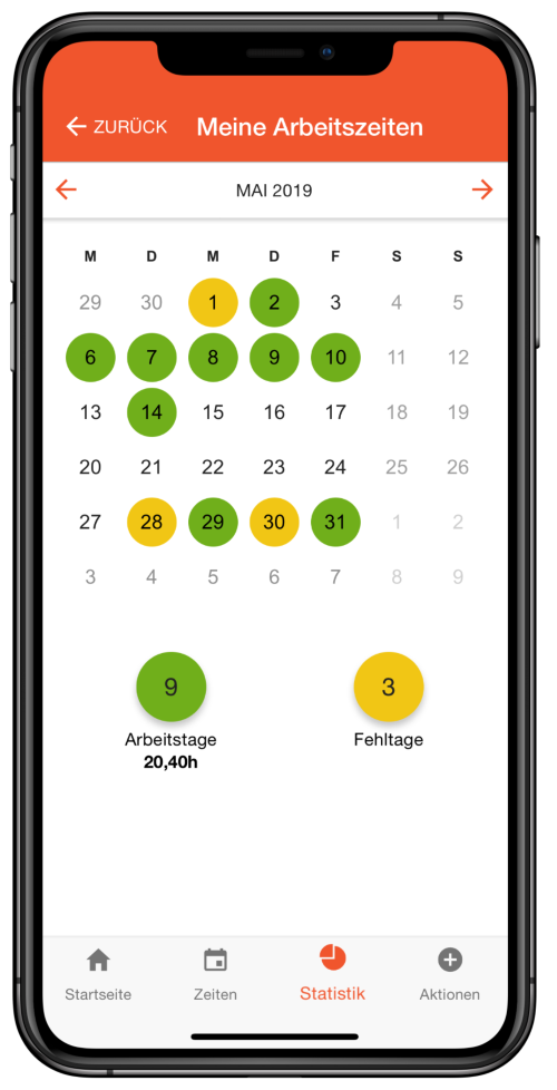 Die Statistiken wurden neu programmiert und bieten jetzt zum einen die Arbeitszeiten im Überblick an und zum anderen auch die Urlaubstage vom Mitarbeiter. So kann sich jeder Mitarbeiter über bereits genommenen Urlaub selber informieren.