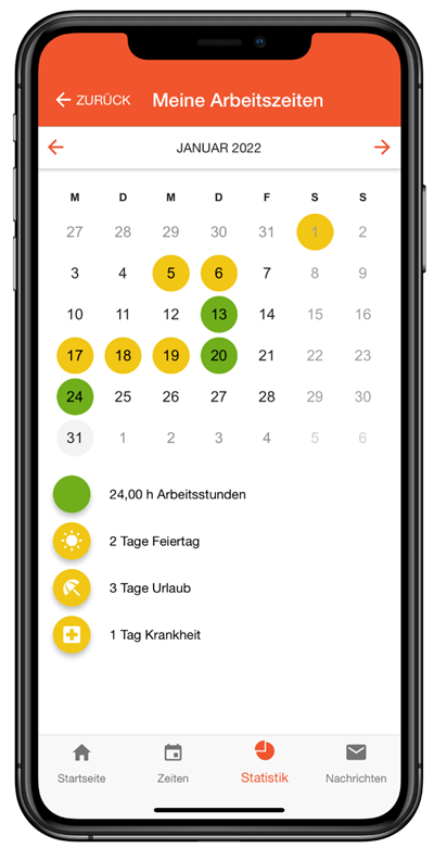 In der Übersicht der Arbeitszeiten werden die Abwesenheiten getrennt aufgeschlüsselt dargestellt. Dies hatte in der Vergangenheit zu Rückfragen geführt, jetzt sind die Daten besser verständlich.