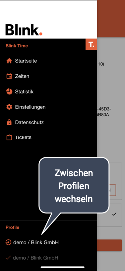 Ein Profilwechsel ist nur möglich, wenn aktuell gerade keine Zeiterfassung läuft und wenn keine Offline Zeiten vorhanden sind.