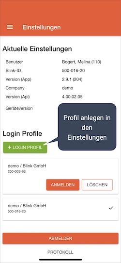 Profile können auch für unterschiedliche Blink-Systeme angelegt werden! Wenn eine Reinigungskraft also für 2 Arbeitgeber arbeitet, die beide Blink einsetzen, können beide Profile hinterlegt werden.