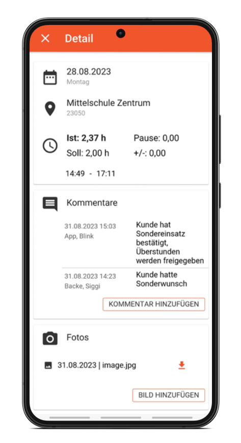 In den Einträgen können auch Kommentare oder Bilder hinterlegt werden, sowohl von deinem Objekt- bzw. Teamleiter, als auch von dir.
