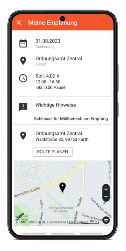 Er wird dir auch angezeigt, sobald du den Objekt-Code gescannt hast.Routenplaner: Du siehst hier die genaue Adresse des Objektes und den Standort auf einer Karte.